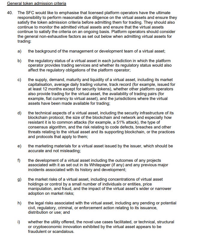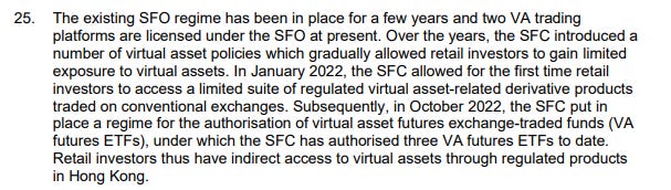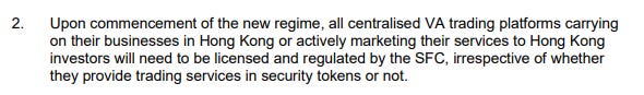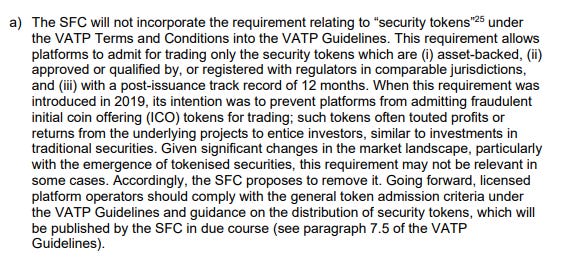그런 다음 SFC는 이전에 "자산 담보 토큰"을 증권 규제에서 면제했던 VATP 가이드라인을 폐지할 것을 제안합니다.