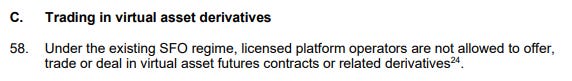 그런 다음 SFC는 라이선스를 유지하기 위해 어떤 플랫폼도 선물이나 기타 파생상품을 제공할 수 없다는 점에 주목합니다.