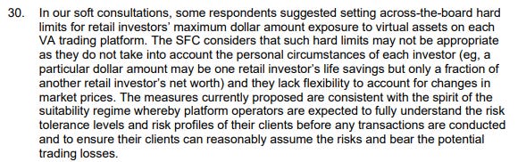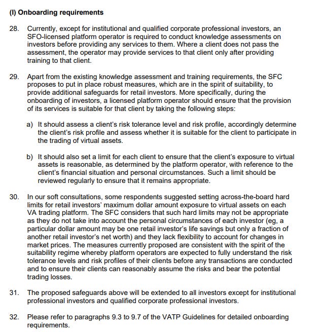 세부 사항에는 "사용자가 동의하지 않으면 할 수 없다"가 아니라 "할 수 없다"라고 명시되어 있어 홍콩 규제 대상 거래소가 기존에 제공하던 다양한 서비스를 제공할 수 있는 기회를 차단할 수 있습니다.