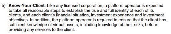즉, 홍콩에 등록된 거래소는 고객이 입금을 허용하기 전에 가장 침습적이고 상세한 KYC/AML 프로그램을 갖춰야 합니다.